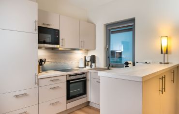 Auch an die Kinder ist gedacht: Sie finden einen Kinderhochstuhl, ein Babybett und Kindergeschirr in der Wohnung vor. In naher Umgebung zur Wohnung gibt es ebenfalls einige Spielmöglichkeiten für die Kleinen. Sei es die Erlebnisseebrücke direkt am Strand, der Kletterspielplatz im Yachthafen – oder bei schlechtem Wetter das Aktiv-Hus im Ferienpark.